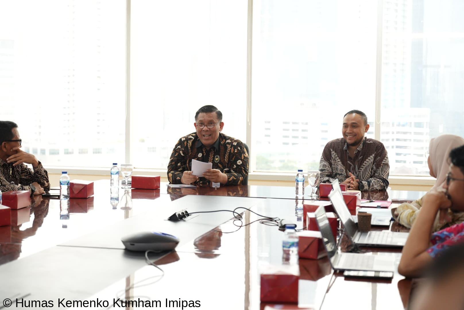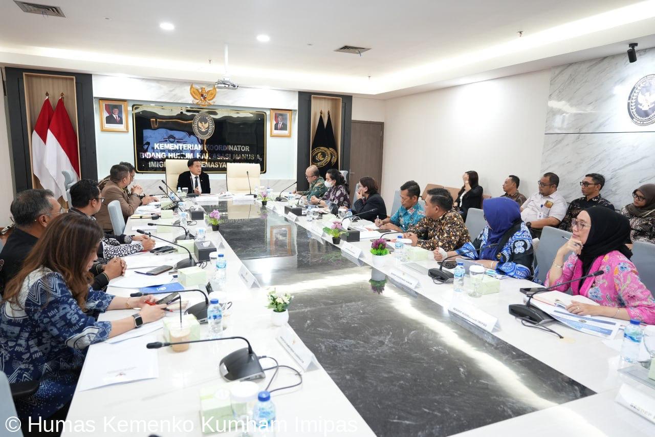 Jakarta, 5 Maret 2025 – Kementerian Koordinator Bidang Hukum, Hak Asasi Manusia, Imigrasi, dan Pemasyarakatan menggelar rapat pembahasan rancangan awal panduan teknis pelaksanaan koordinasi di