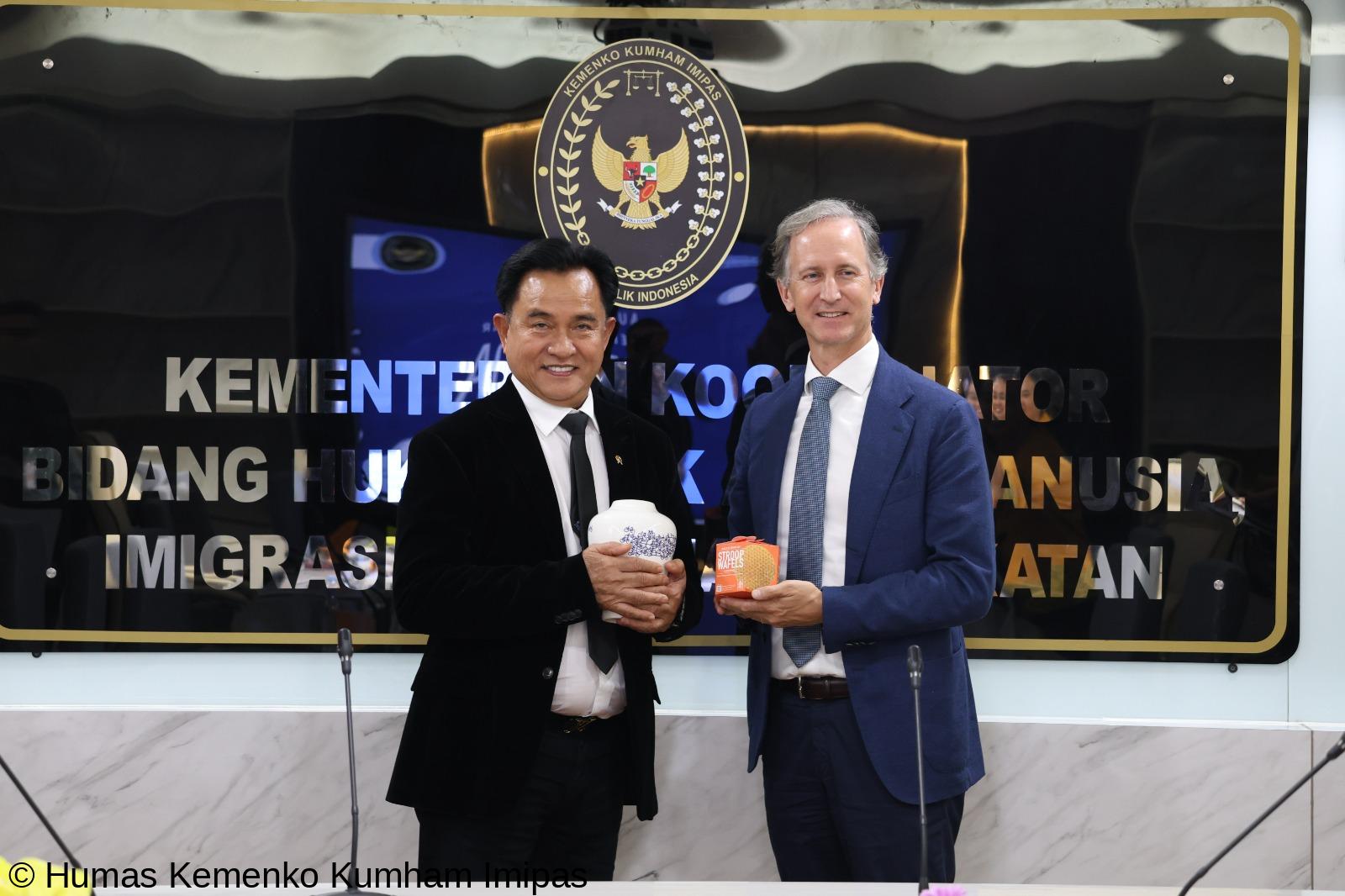 Jakarta, 28 Februari 2025 – Menteri Koordinator Bidang Hukum, HAM, Imigrasi, dan Pemasyarakatan, Yusril Ihza Mahendra, menerima audiensi Duta Besar Belanda untuk Indonesia,Marc Gerritsen, pada