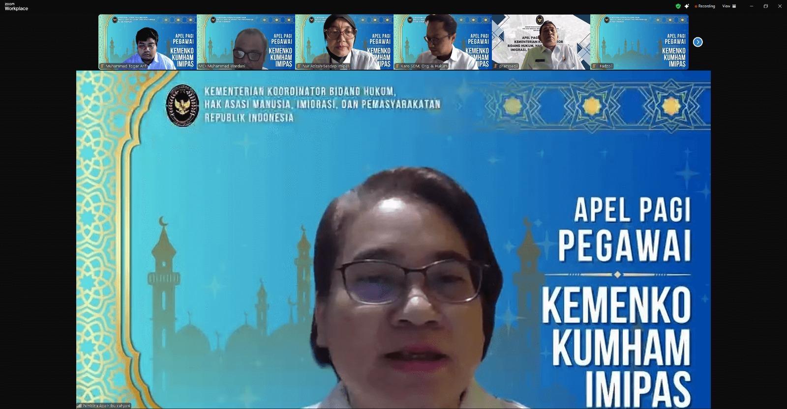 Jakarta, 4 Maret 2025 – Kementerian Koordinator Bidang Hukum, Hak Asasi Manusia, Imigrasi, dan Pemasyarakatan (Kemenko Kumham Imipas) kembali menggelar apel pagi secara virtual sebagai bagian dari